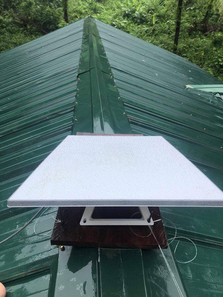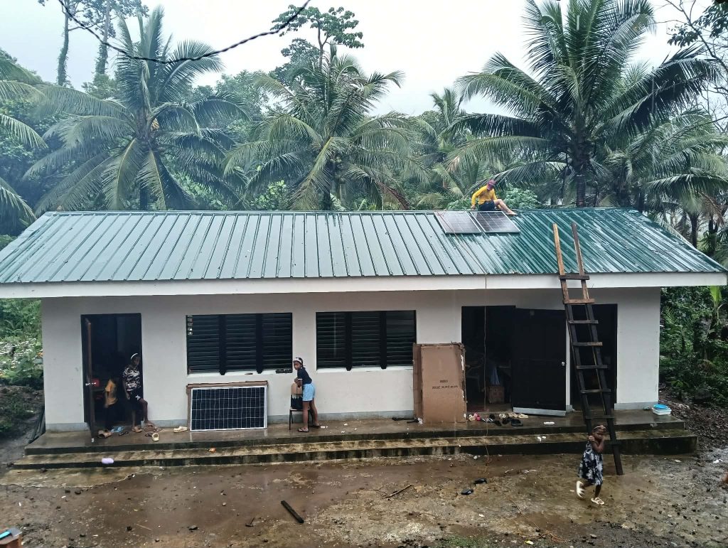 Na wat vertraging door de hevige regenbuien in de eerste weken van December hebben we het afgelopen weekend de spullen naar Madaraque lagere school gebracht en heeft de meegereisde monteur de zonnepanelen en de satellietontvanger op het dak van de school geplaatst. Zo vlak voor kerst, het feest van het licht, is dat een heel bijzondere gebeurtenis voor de kinderen van de school. Afgelopen zondagochtend stonden ze vol verwachting de boot al op te wachten. Dat was een reis van 10 uur met een autobusje en 4 uur met een boot. Op een van de bijgevoegde foto’s zie je het licht branden in een klaslokaal. Wat een feest. De kinderen konden er geen genoeg van krijgen om het licht aan en uit te doen. Toen het om 17.30 donker werd, wilden ze ook niet naar huis. Internet duurt nog enkele dagen omdat het aangevraagde internet abonnement eerst door de aanbieder goedgekeurd moet worden. Op de foto ook het schooltje, twee klassen en twee leerkrachten met 50 kinderen. We hopen dat de elektriciteitsvoorziening de ontwikkeling van de kinderen versnelt en dat we spoedig ook middelbaar onderwijs voor deze groep kunnen gaan verzorgen. We hebben deze dag natuurlijk voor de kinderen en hun familie extra feestelijk gemaakt met een bami gerecht en snoepgoed. Helaas is het slaapzaaltje ernstiger beschadigd dan we eerst dachten, en zit al het hout vol met termieten. De gemeenschap werkt er hard aan om het slaaplokaal voor january weer gebruiksklaar te hebben. Er word hout gekapt en op maat gemaakt, mede dankzij uw steun kunnen we stalen dakplaten bestellen en andere materialen als schroeven en spijkers.